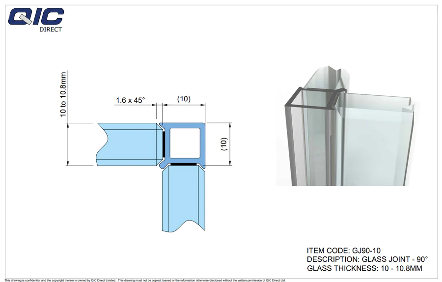 Home » Shop » Glass Fittings » Partition Channels & Joints » Glass To Glass Joints – 90 Degree Infil Corner