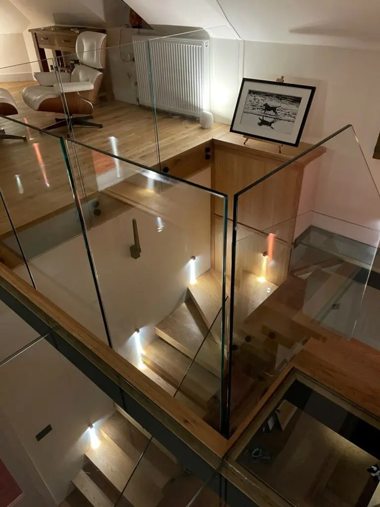 Custom made toughened laminated walk-on glass and toughened glass balustrades.